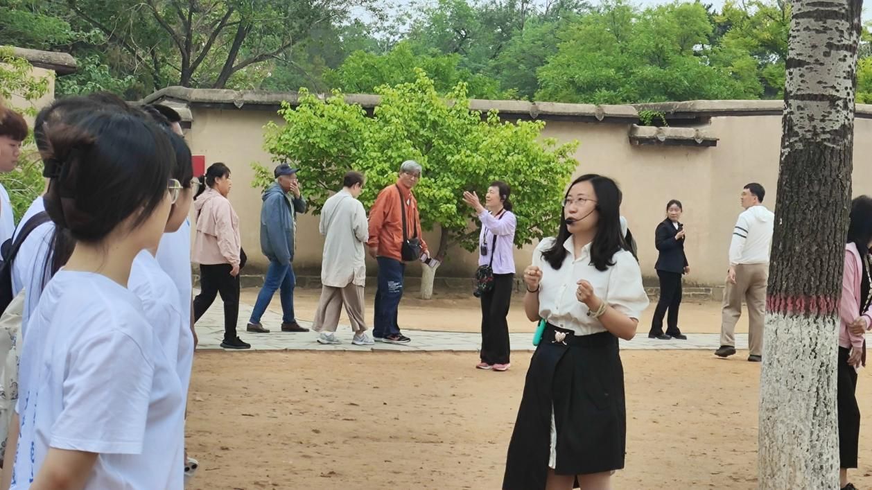 之后,在七届二中全会旧址前,马克思主义学院宋筱静老师为师生们生动讲述了毛主席等老一辈领导人在西柏坡指挥的三大战役及七届二中全会胜利召开的伟大事迹,并且号召同学们要认真学习领悟西柏坡精神,为今后生活学习注入不竭精神动力,在奋力实现“中国梦”的征程中再立新功。