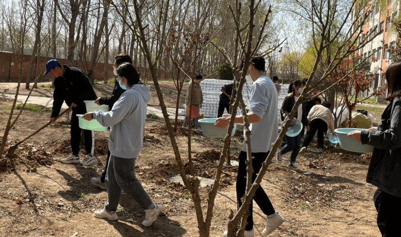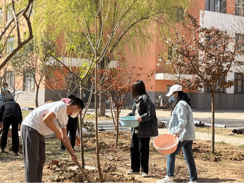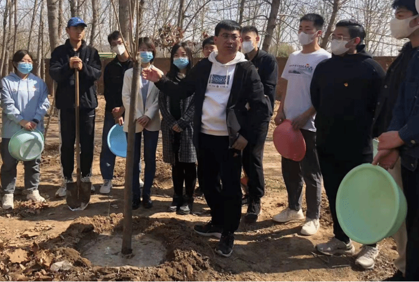 为了贯彻“用行动去传播”的环保理念,激发学生们爱木造林的感情,促进校园绿化,保护生态环境,aa3044永利集团于2022年4月3日上午10:00,在三号宿舍楼东侧组织“春暖花开学生党员志愿浇树活动”,本次活动由aa3044永利集团党总支书记、学管副院长尹钧带领,团总支书记苗璋寒、辅导员代表刘晓玲老师、王凤老师及全体学生党员参与。