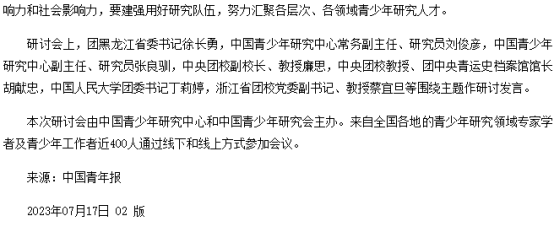 学习宣传贯彻习近平总书记同团中央新一届领导班子集体谈话时的重要讲话精神理论研讨会在京举办