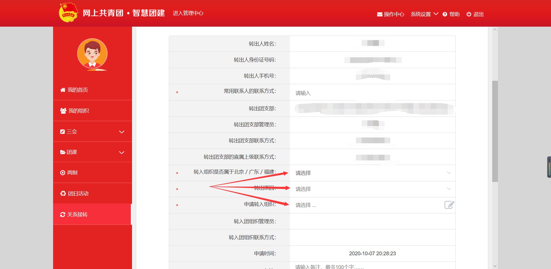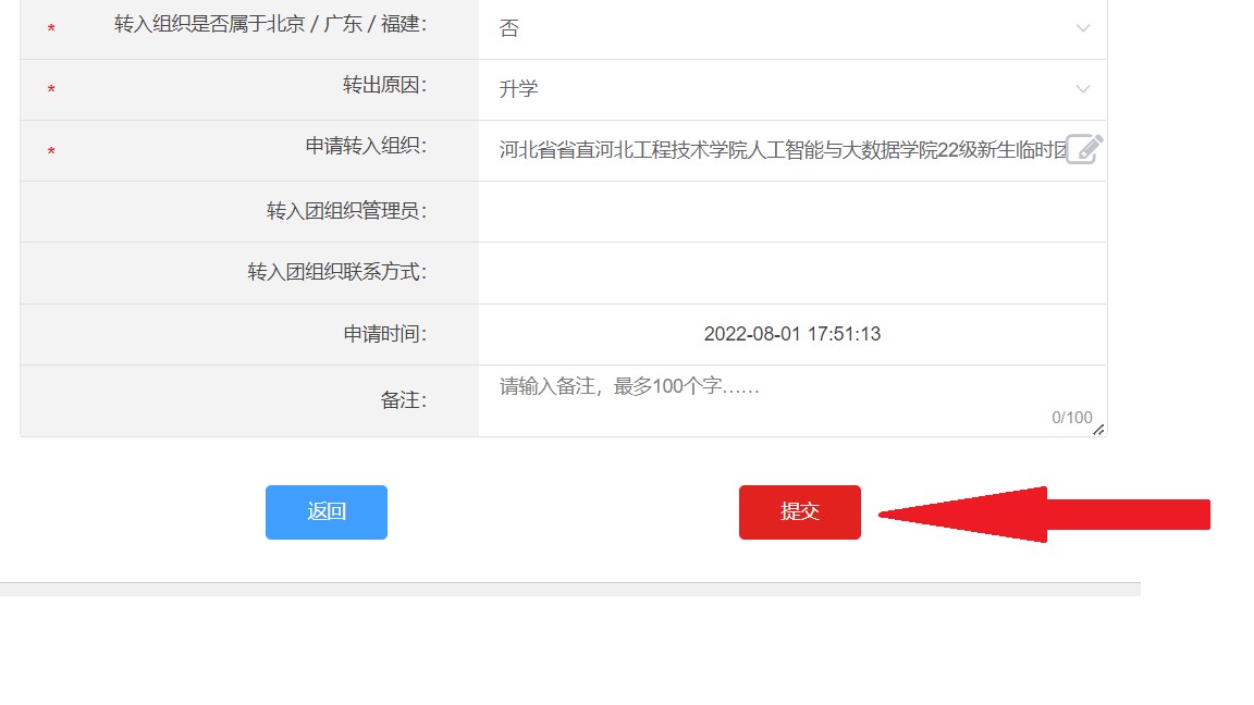 申请转入组织--团河北省委--省直团工委--aa3044永利集团团委—2022aa3044永利集团新生(专接本)临时团支部。然后填写资料,带* 为必填项。