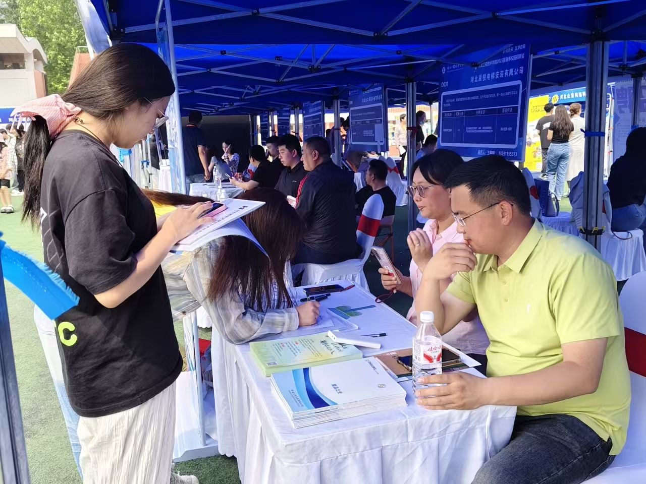 应聘学生们手持精心准备的简历,穿梭于各个展位之间,积极与企业招聘人员交流,主动展示自己的专业技能、实践经验和综合素质。他们在了解企业需求的同时,也结合自身兴趣和职业规划,认真筛选心仪的岗位。