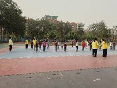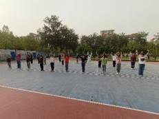 同时在操场上,学院的志愿者们开展“健美操”小课堂,本期健美操教学主题是“日不落”,伴随着悠扬的乐曲,小朋友们欢快的跳跃着,就像一颗颗星星闪耀在校园里,熠熠生辉。健美操的有趣教学为孩子们提供了锻炼身体的欢乐时光。志愿者们生动的教学不仅活跃了课堂气氛,更让孩子们在欢声笑语中收获良多。