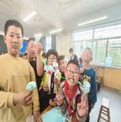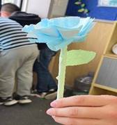 另一课堂开展的是“垃圾分类,变废为宝”手工小课堂,本期手工课堂主题为“口罩花”,志愿者和小朋友们围坐在一起,使用了剪刀、吸管、绿色卡纸等将口罩重新利用,通过动手实践,制作出了一朵朵五彩缤纷的花朵,让原本简单的口罩变得鲜亮美丽,让学生有了更加强烈的学习和创作欲望。