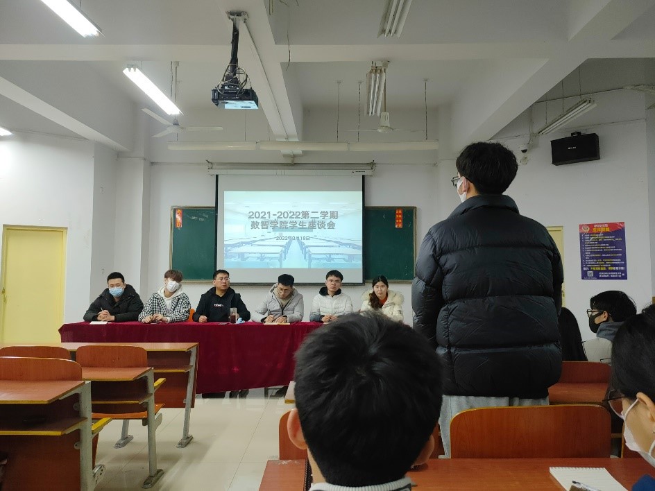 为提升学生管理工作效率,落实立德树人根本任务,进一步改善校园的学习和生活环境,提高学院各方面建设更好地服务于师生,aa3044永利集团于2022年3月18日在主教1-2教室开展2021-2022第二学期数智学院学生座谈会。aa3044永利集团学管副院长尹钧、学管办主任杨家腾出席会议,同5名19级数据科学与大数据技术专业学生代表,与20级、21级学生代表进行交流座谈。