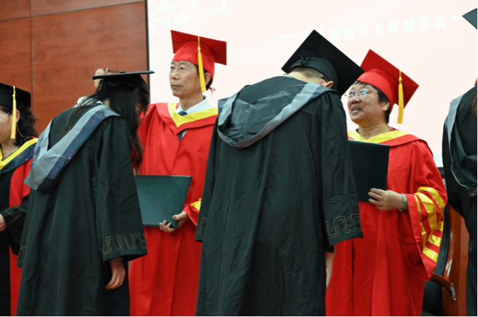 毕业生代表任子涵发言,回顾了自己在数智学院的宝贵学习经历,表达了将在新的人生阶段拼搏进取的坚定信心。她表示,无论是继续深造,还是扎根基层努力工作,毕业生们都将传承“修德凝道”校训精神,在青春的赛道上奋力奔跑,在全面建设社会主义现代化国家的火热实践中绽放属于河工数智青年的光彩。