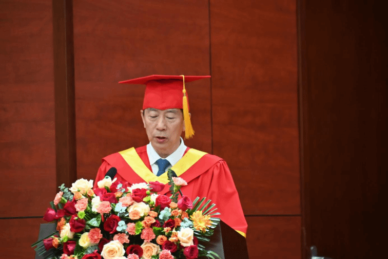 首先,董事长许顺亭为2023届毕业典礼致辞,同学们,我们正处于中华民族伟大复兴战略全局和全世界百年未有之大变局的时代背景下,放眼全球,千帆竞发,百舸争流。把自己汇入到社会这个大海里,去奔腾吧!