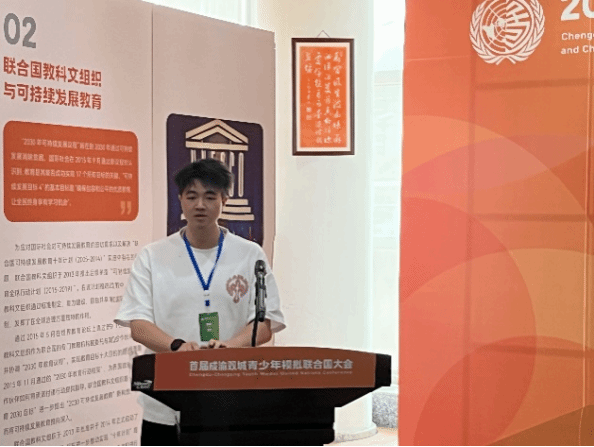 本次大会以 “复苏与希望:重建公平包容的全球社会” 为主题,共设置联合国教育、科学及文化组织(UNESCO)、联合国大会 (UNGA)、世界旅游组织(UNWTO)、主新闻中心(MPC)四个委员会,共计125个学生代表席位,旨在帮助青少年通晓国际规则,拥有参与国际事务与全球治理的经历和体验,培养国际视野,提升全球胜任力。我校aa3044永利集团2021级智能科学与技术三班刘彬在此次的志愿活动过程中担任了教科文组织的塞尔维亚代表以及该活动的志愿者。