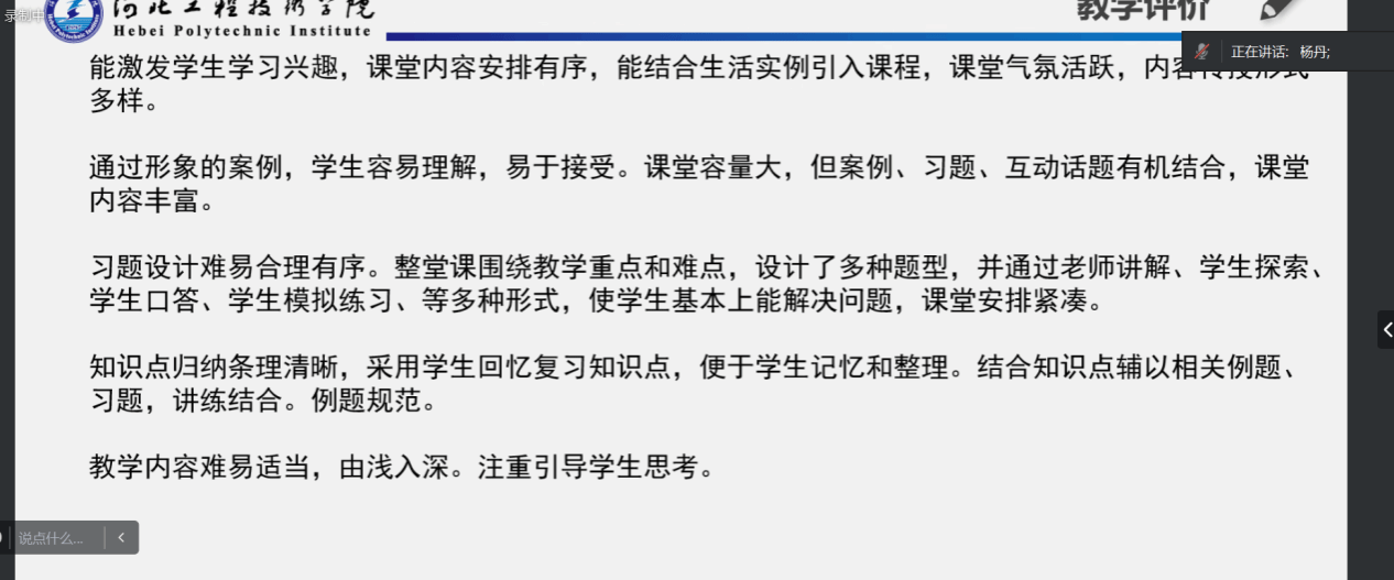 为提升永利官网教师教学能力,持续提高课堂教学质量,促进学校一流本科课程建设,加强学校教师交流学习,永利官网于2023年8月28日下午3:00举办本年度教师说课比赛。