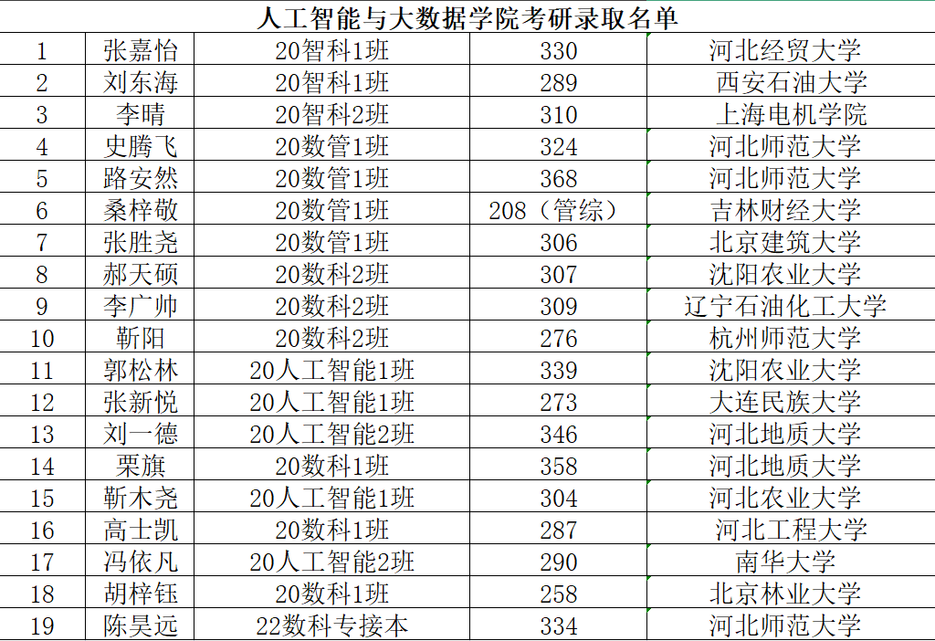 全院共19名同学成功“上岸”考取研究生,以优异的成绩被各院校录取。