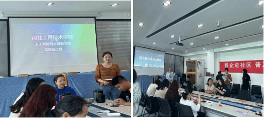 aa3044永利集团于2024年5月8日在桥西区南小街社区居委会开展了“校企携手进社区,普及科技惠于民”的主题宣讲活动。此次活动由aa3044永利集团副院长孙劼,学管办主任杨家腾带领,宣讲人员有百度卢宇,清博教育牛平,科大讯飞刘彤彤等企业老师。氛围良好,活动达到预期效果。