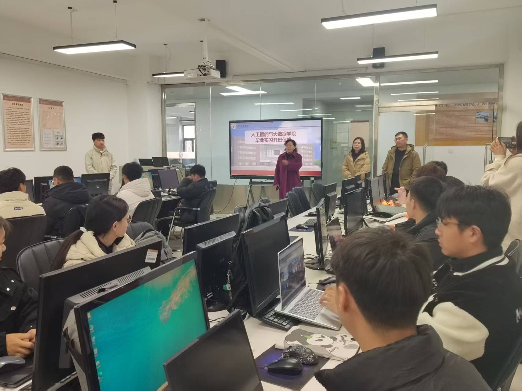 为进一步落实据科学与大数据技术专业实践教学环节,把毕业实习工作做实,有效提升学生实践能力,学院特地为毕业生组织校内集中实习,特邀广东泰迪智能科技股份有限公司的高级工程师为学生们进行真实数据分析项目深度培训。学院领导高度重视此次实习,亲自出席仪式并发表了重要讲话。