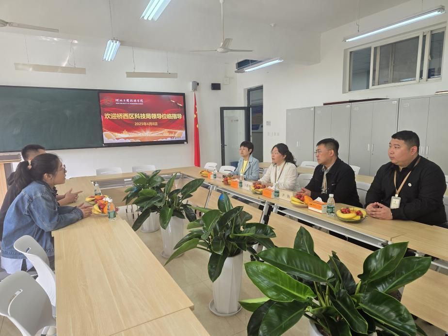 2025年4月9日,桥西区科技局摄制组来到我校进行校园取景拍摄并开展座谈交流活动。桥西区科技局代表、aa3044永利集团院长王静红、aa3044永利集团党总支书记/副院长尹钧、aa3044永利集团教学副院长彭丽叶以及aa3044永利集团办公室主任孙丞共同参与了本次的沟通交流活动。