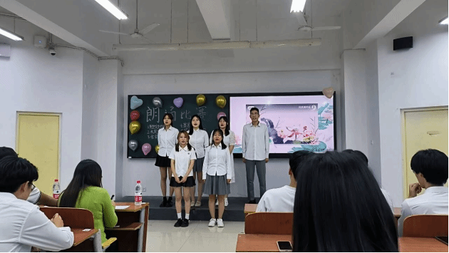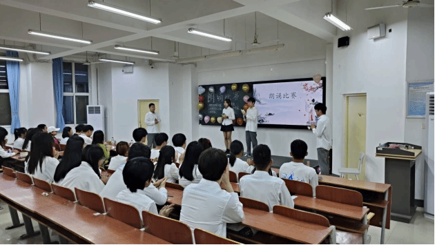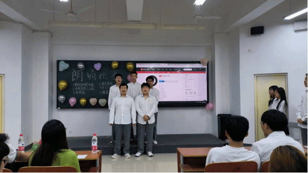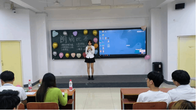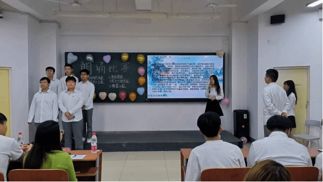 整场比赛下来,从器宇轩昂的《蜀道难》到“出淤泥而不染”的《爱莲说》,再到热血沸腾的《致青春》,又从安贫乐道的《陋室铭》到令人心驰神往的《春江花月夜》。一首首各具特色的经典诗歌被优秀的同学们倾情演绎,带领听众一次次走进美好的视听之旅,感受文字与声音相结合的艺术魅力。在活动中,同学们以其真挚热忱的嗓音、饱满充沛的情感、慷慨激越的语调,自信大方的形象展现了大学生踔厉奋发、笃行不怠的青春风貌,赢得了台下学生们的阵阵掌声。