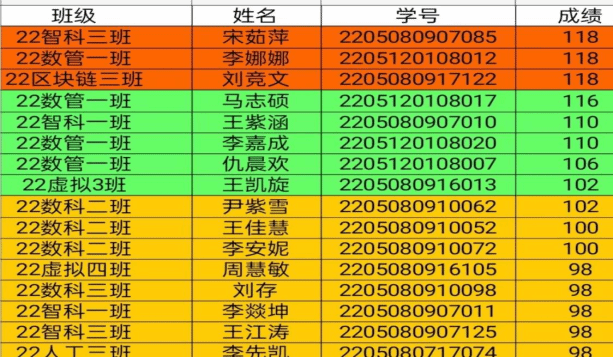 参与人员的成绩单
