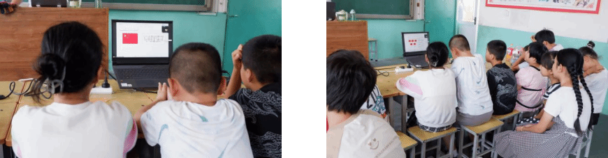 曹家庄小学学生上课时的照片