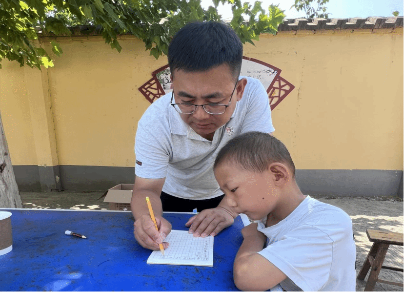 纵然学习课程时很快乐,但也不能忘记假期作业呀,“小智公益团队”中大数据学院党总支书记兼学管副院长尹均俨然将曹家庄小学的小朋友们当做自己的孩子一样耐心辅导作业。