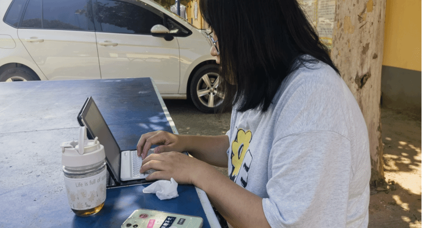 “小智公益团队”成员在写今日总结