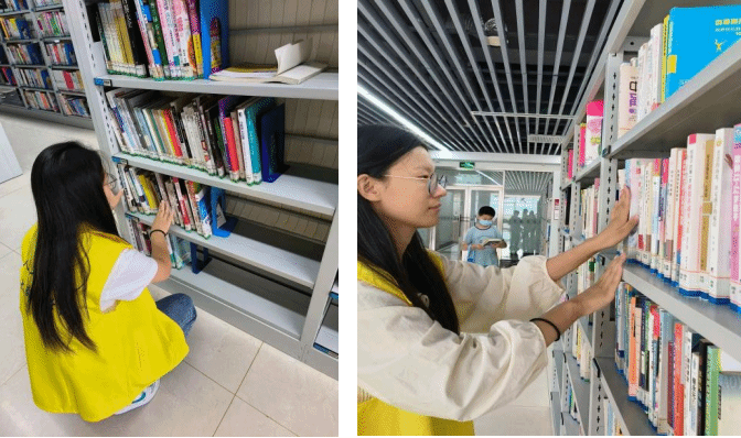 图书馆在提高学生文化修养方面扮演着重要的角色。它为学生提供了一个学习、阅读和获取知识的平台,帮助他们开阔视野,增长见识并提升自身素质。志愿者们在管理员的带领下分工合作,整理书架、归还图书,齐心协力完成图书馆工作人员分配的任务。在整理书籍过程中,各阅览区均有阅读者在自习阅读,志愿者们全程保持安静,动作缓慢轻微,营造了良好的图书馆氛围,并且将图书馆打扫的湛然一新。