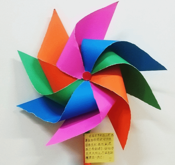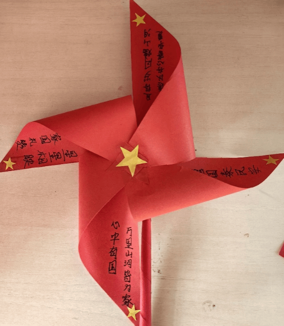 此次活动围绕中华人民共和国建国74周年开展,采用线上的模式去开展此次活动。学生们需在家里自己用红色的卡纸去折成纸风车,如不会折纸风车也可以折成纸飞机,然后把自己对祖国母亲的美好祝愿写在卡片上并挂在精心制作的红色纸风车和纸飞机上,将自己所写的卡片内容拍照发到群相册,转动的风车象征着我们对祖国的爱意永不停歇并传播给自己的身边人,放飞的纸飞机代表着我们昂扬的爱国热情一路飘扬播撒到远方,学生们对祖国的美好祝愿也将被送去祖国的大好河山。