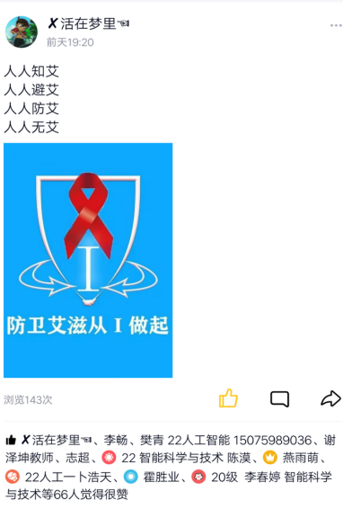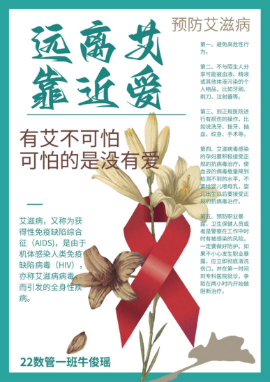 2022年,我国世界艾滋病日宣传活动主题为“共抗艾滋 共享健康”。强调每个人都参与进来,携手应对艾滋病流行带来的风险与挑战,倡导全社会共建共治共享。为了宣传防艾知识、提高学生自我保护意识,全面做好防艾工作,同时为了确保广大学生的健康与安全,倡导积极向上的青春理念和文明健康的生活方式,促进学生身心健康发展,关爱和帮助受艾滋病影响的人群,营造零歧视的校园氛围,aa3044永利集团学生联合会举办“防艾不防爱”海报设计活动。