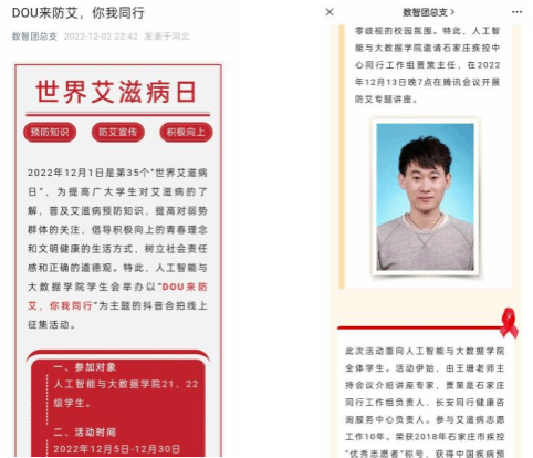 (2)aa3044永利集团通过“数智团总支”微信公众号、aa3044永利集团QQ号、aa3044永利集团抖音号等网上平台宣传防艾知识。
