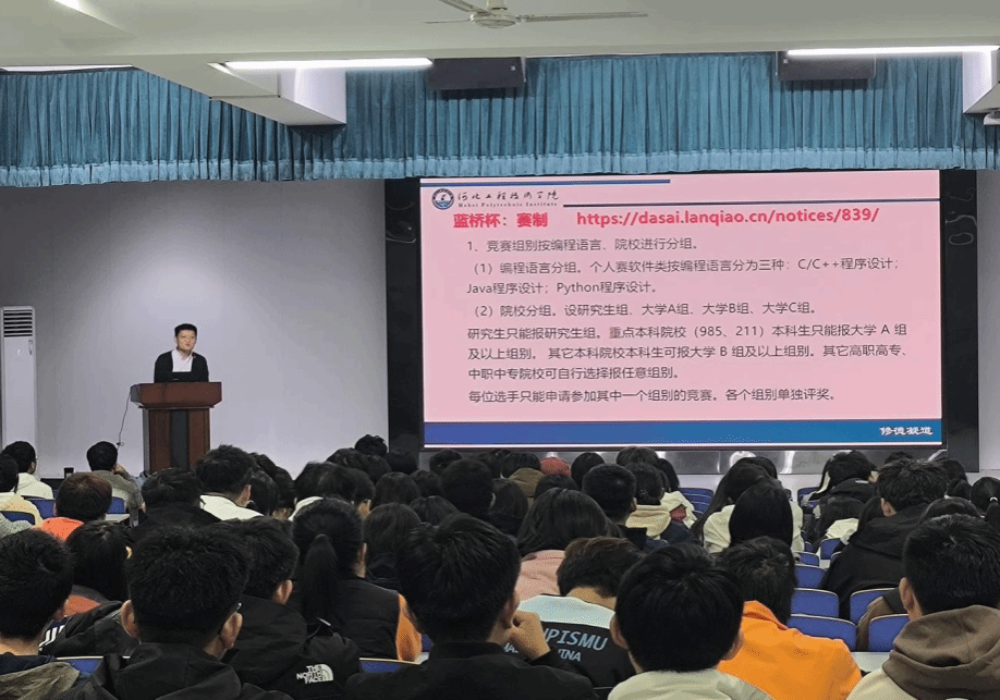 讲座开始,王乐老师讲解了近年来学生们参与的竞赛以及学生获奖的情况,主要介绍了ICPC、蓝桥杯等知名赛事,并十分细致的向学生们详述了蓝桥杯比赛的赛制和评分机制。王老师鼓励学生们要学好高数和英语,为学习算法打好坚实的基础。王老师的讲解形象生动,语言简练易懂,将复杂的知识点以易于理解的方式呈现给学生们,讲解深入浅出,使学生们在轻松愉快的氛围中汲取新知识。