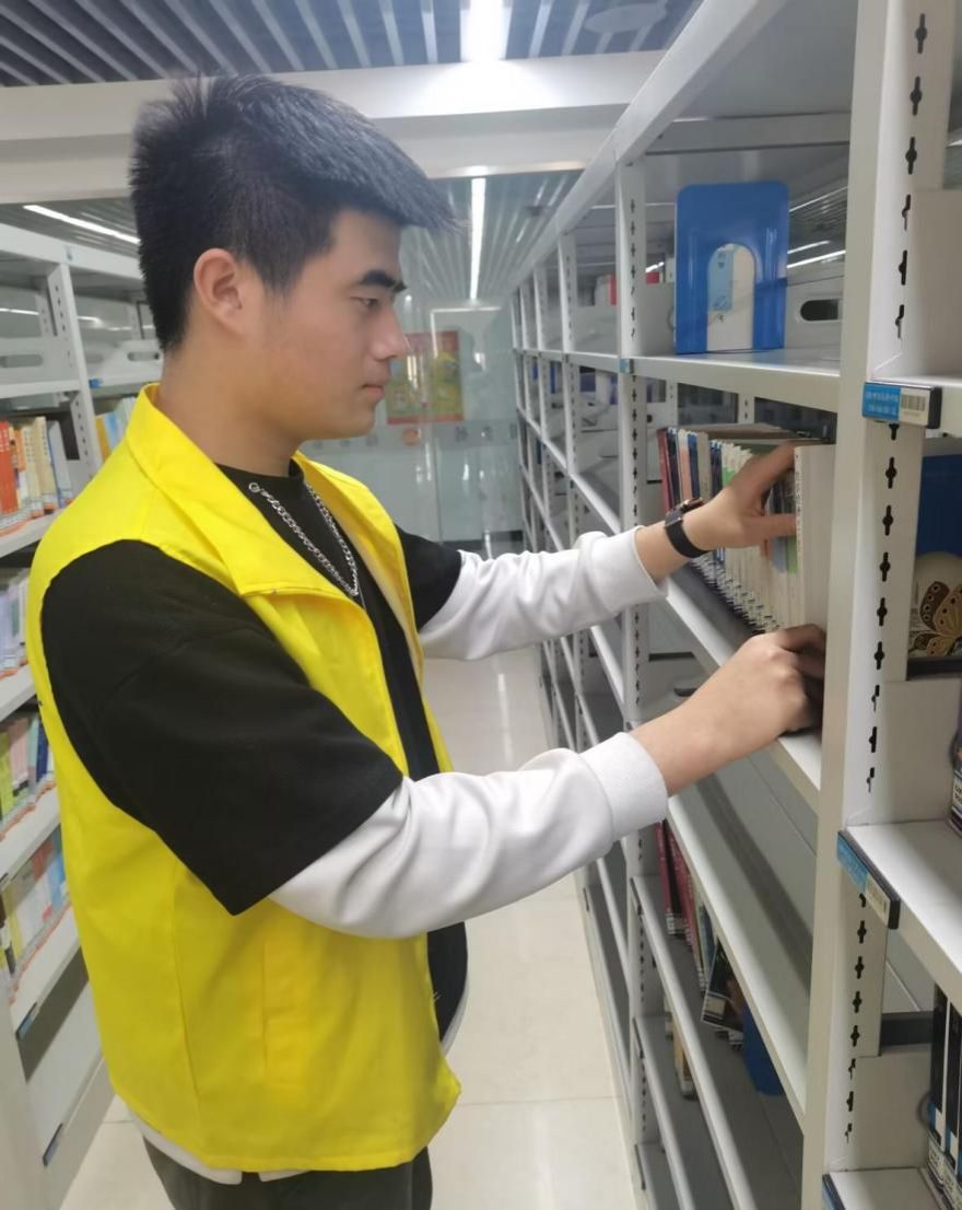 书是一叶扁舟,能带领我们在知识的海洋里遨游;书是一阵清风,能为我们驱赶心灵的燥热;书是人类进步的阶梯,催促人们步步向前。想要沉浸在书香里,一个良好的读书环境必不可少。志愿者们穿梭在书架间,将书籍上架,摆放分类,为读者指引图书位置,引领读者找到所需要的书籍,一时间图书馆各个地方都能看到志愿者们勤奋的身影,图书馆的环境也因为志愿者的帮助越来越好。
