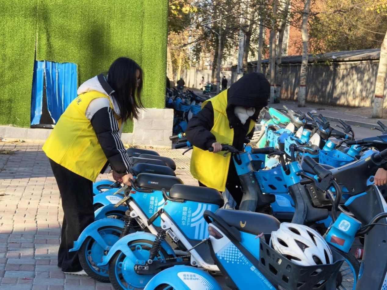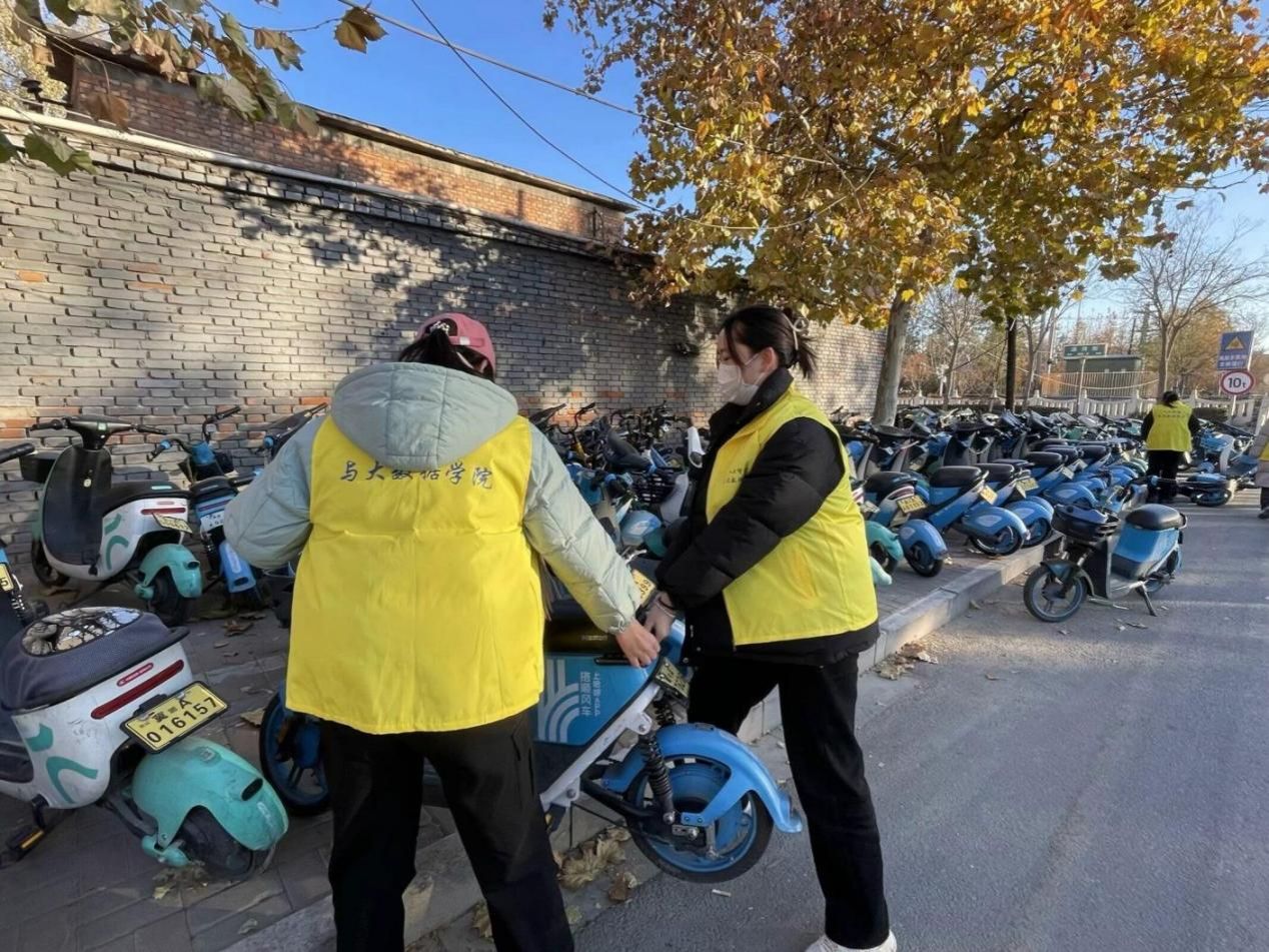 aa3044永利集团青年志愿者协会组织学生们于2023年11月29日上午8:00-10:00开展“合理摆放共享单车 争做城市劳动标兵”活动。
