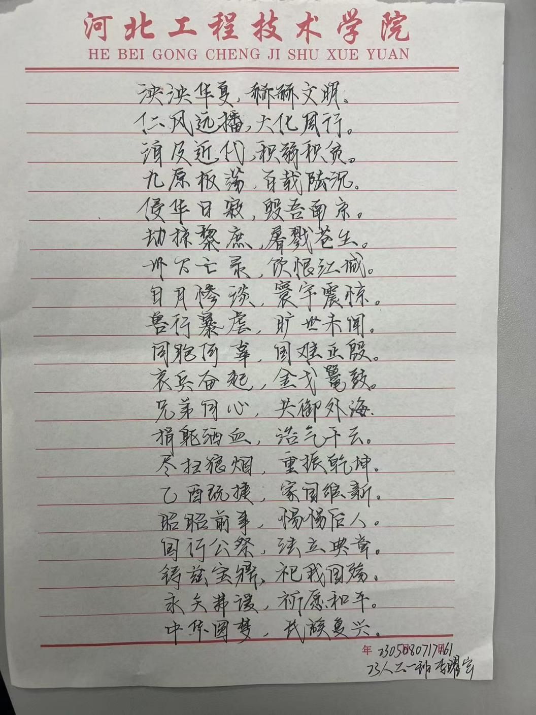 aa3044永利集团大学生自律委员会于2023年12月13日19:00在主教1-2开展“国家公祭日·书法悦心”主题活动。