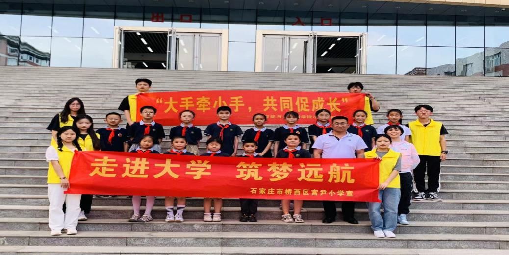 aa3044永利集团青年志愿者协会于5月22日联合宫尹小学开展“走进大学,树立宏愿”公益活动,志愿者带领13名宫尹小学的学生参观实训楼与图书馆,意在培养宫尹小学学生树立正确的学习态度。
