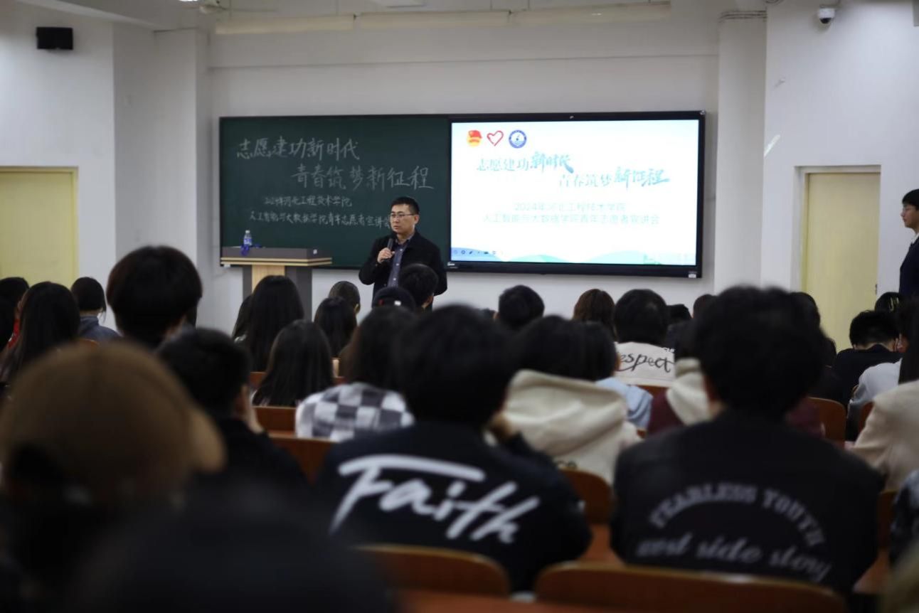 为展现“学雷锋”志愿服务中典型事迹、工作经验和优秀成果,aa3044永利集团于2024年3月25日在主教1-2开展了“志愿建功新时代,青春筑梦新征程”志愿服务分享会。参与本次活动的人员有学院党总支书记、学管副院长尹钧,学管办主任杨家腾,团总支书记王珊,招生就业办主任潘亚静,全体辅导员以及永利官网部分学生代表。本次分享会主讲人是来自2021级智能科学与技术专业3班刘彬。