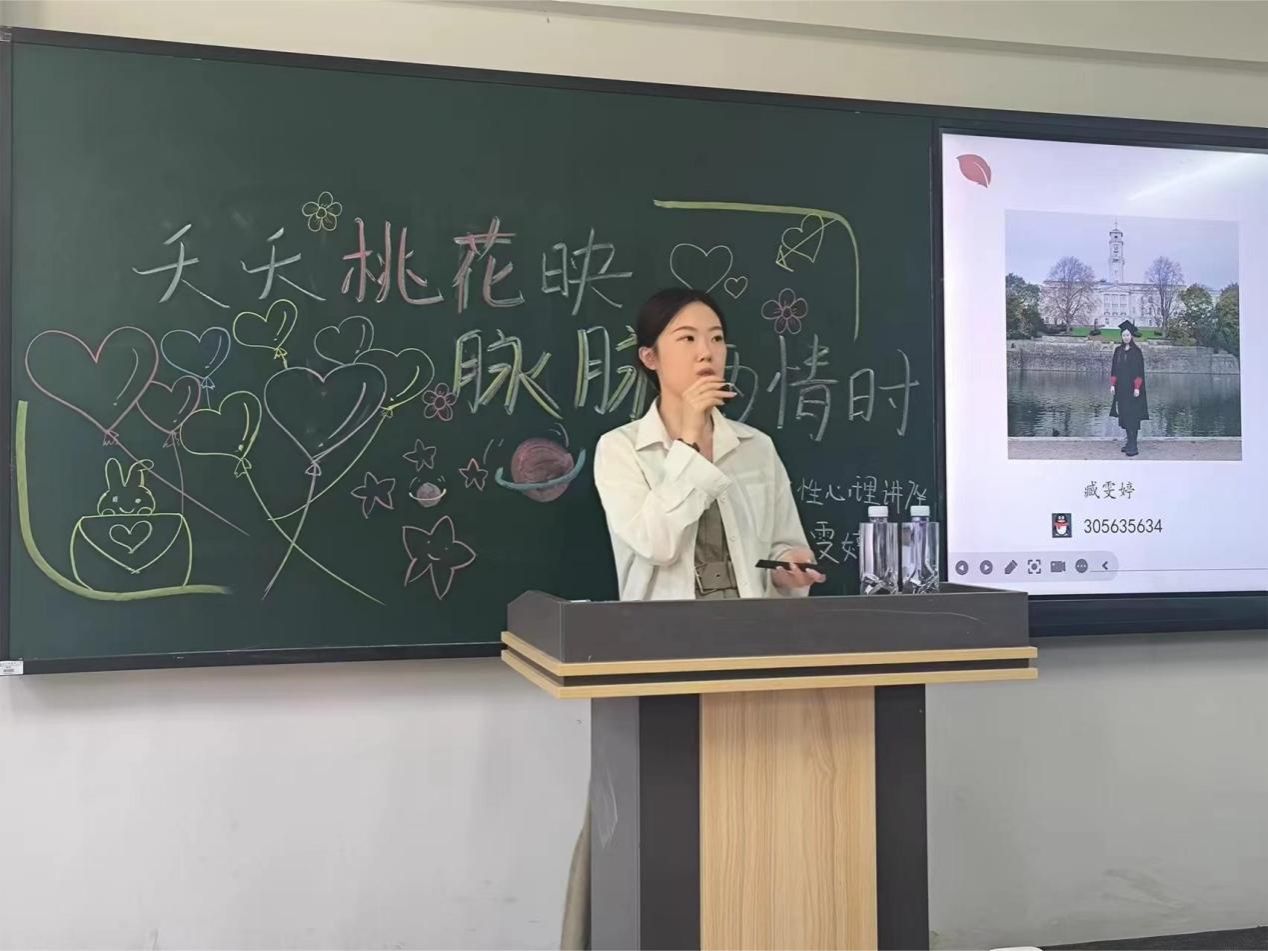 我校第十四届心理健康教育月开展系列活动,通过聚焦大学生恋爱情感上的困惑,帮助大学生树立健康、理性的恋爱观。2024 年 5 月 31日,大学生心理健康教育指导中心专任教师臧雯婷,受邀于aa3044永利集团举办了一场别开生面的大学生恋爱与性心理讲座,吸引了众多学生参与。