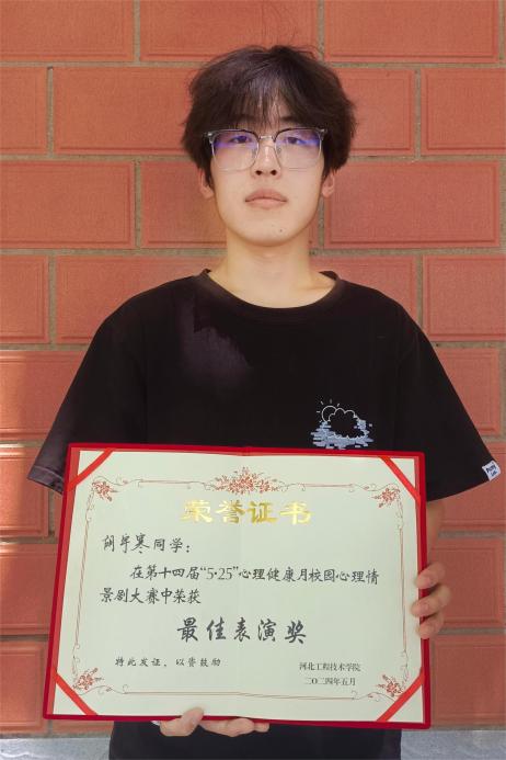 此次心理情景剧活动旨在通过生动直观的表演形式,深入探讨和展现人们在生活中面临的各种心理问题和挑战。剧中男主角由23智能科学与技术专业的胡宇寒同学饰演,他凭借出色的表演获得了最佳表演奖。