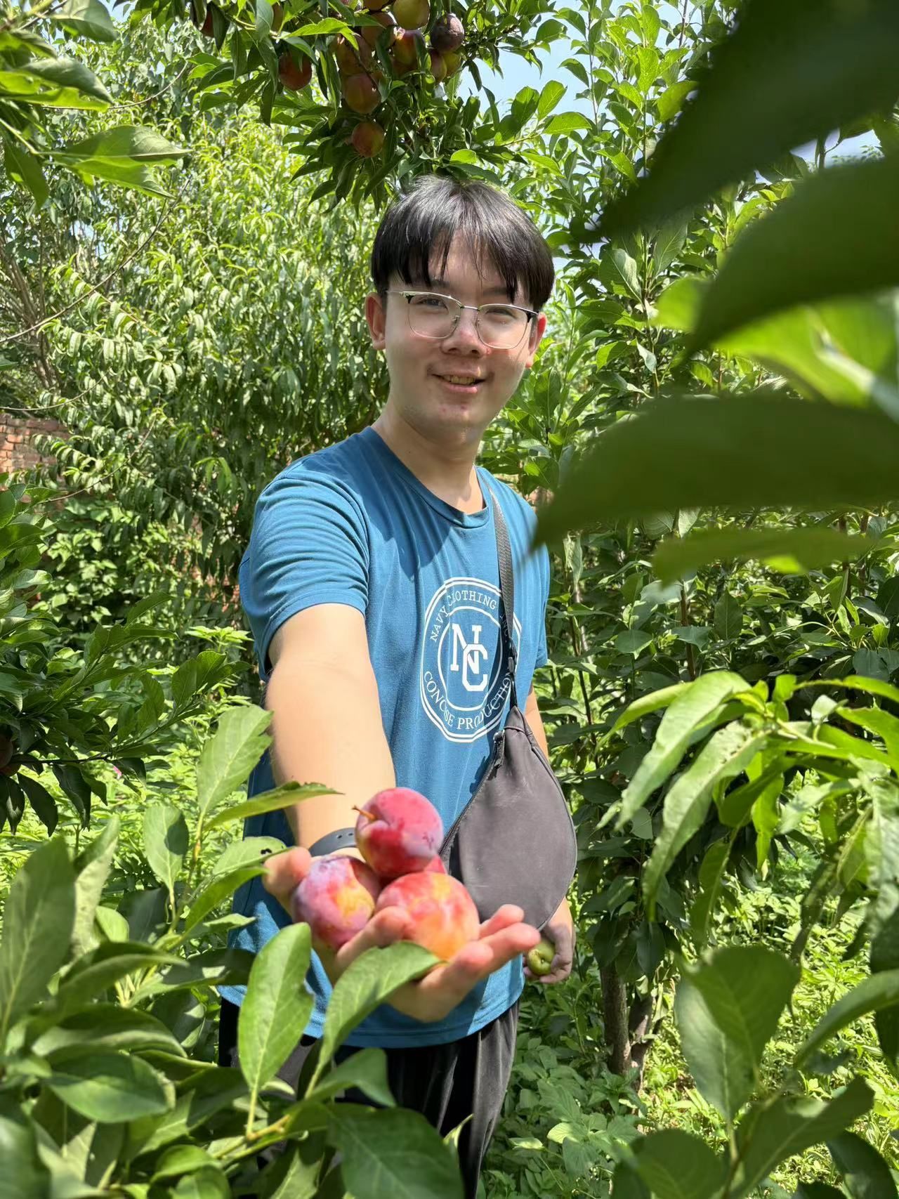 团队成员在果园基地进行李子采摘