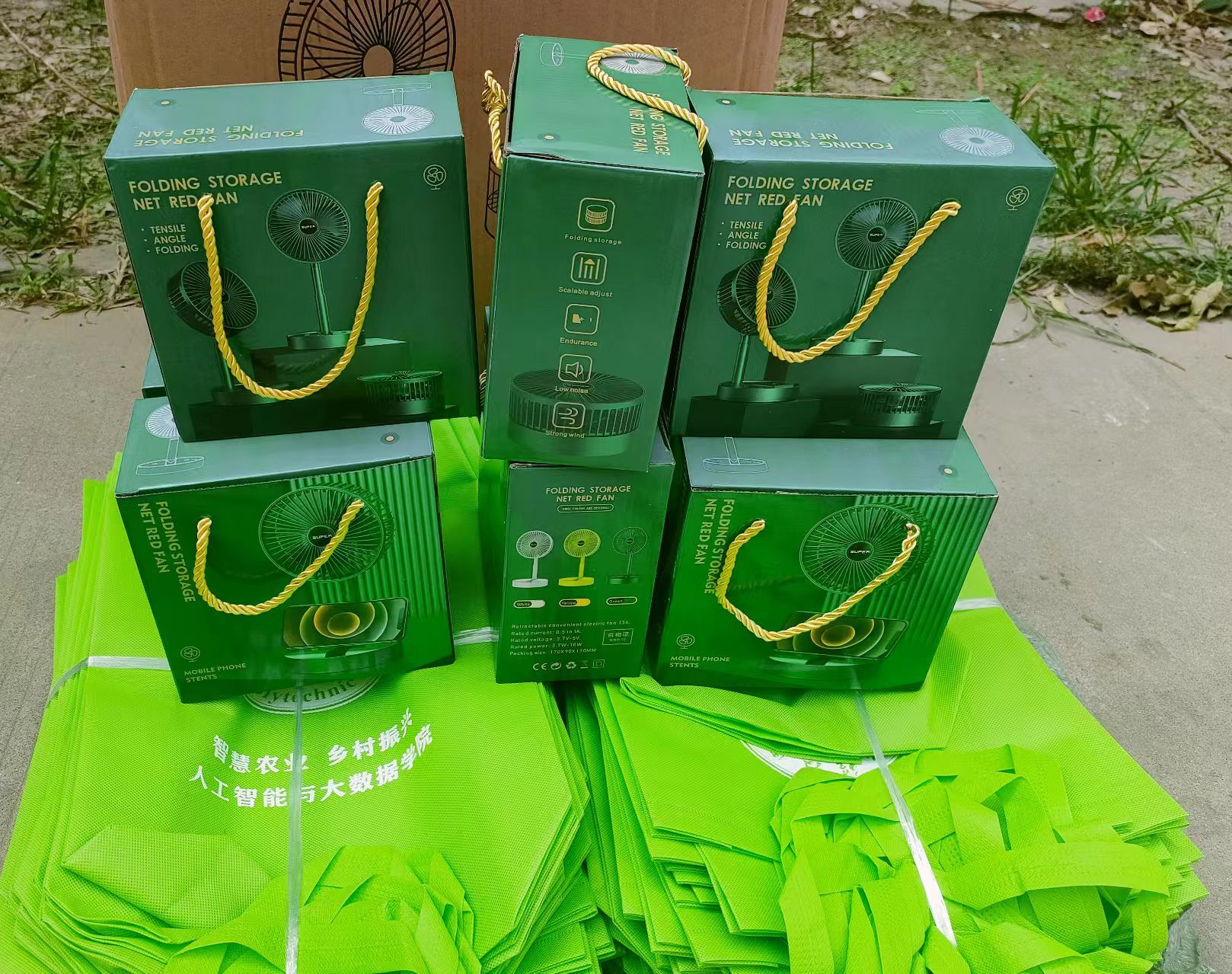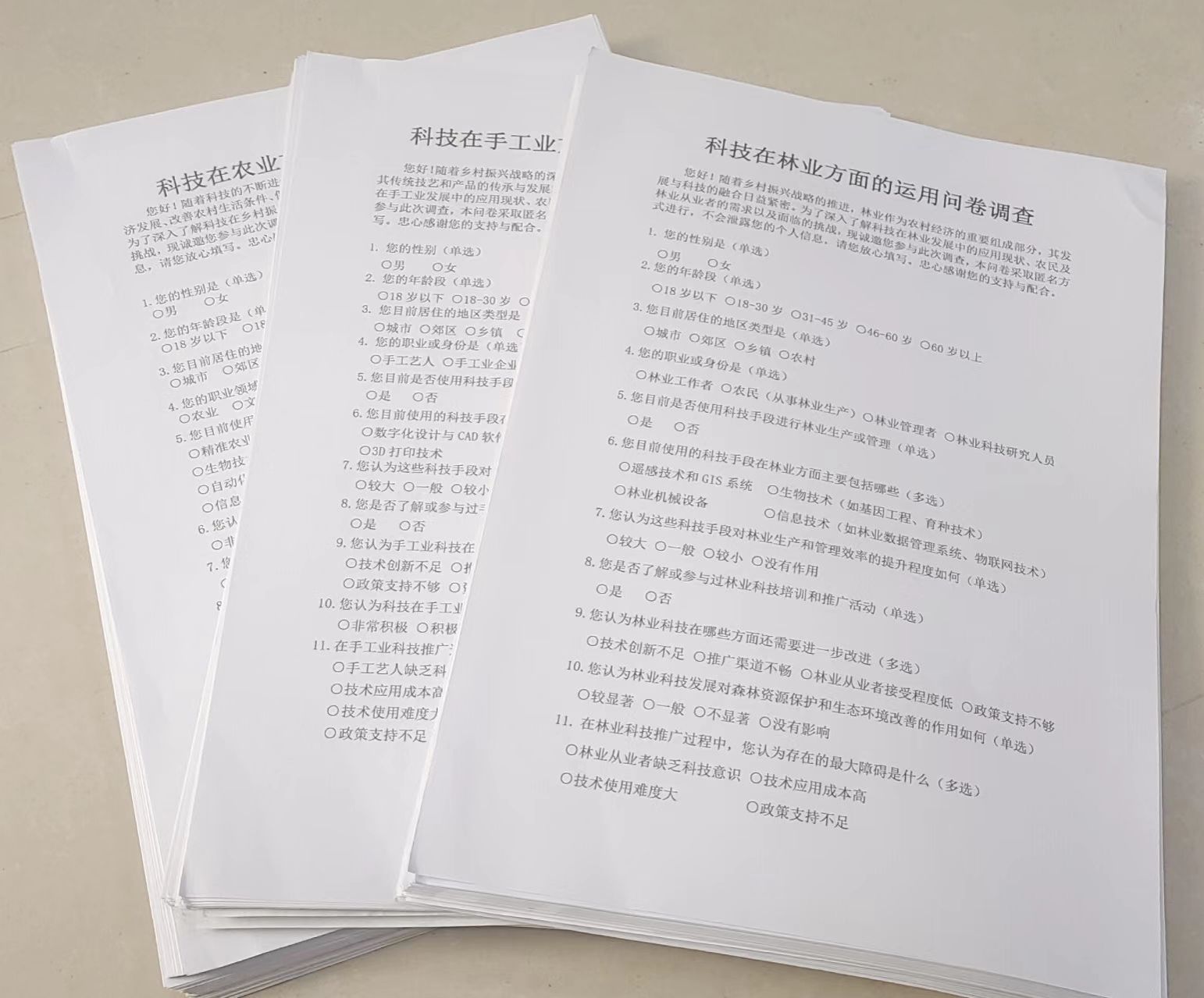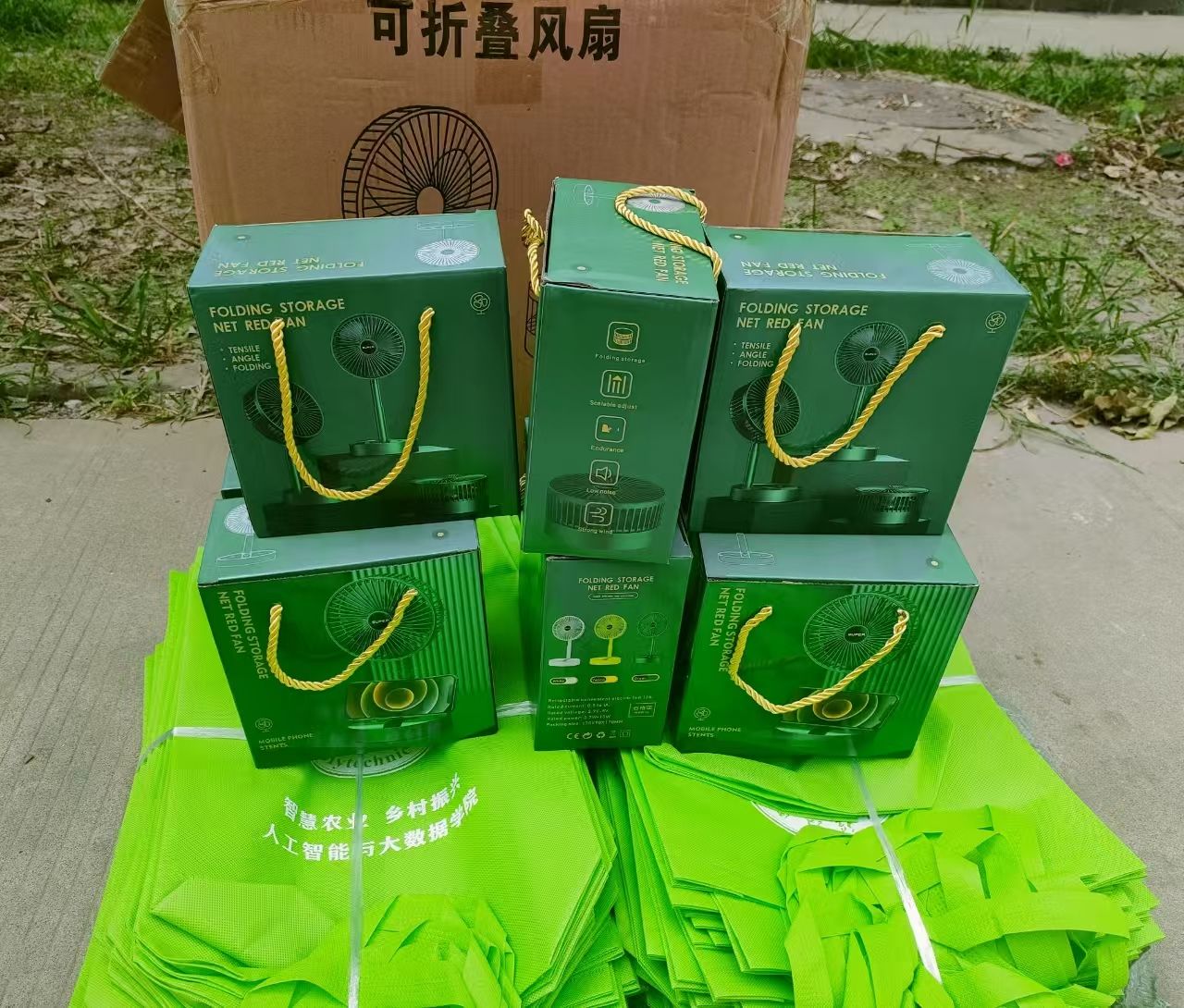 准备工作二:aa3044永利集团乡村智慧“星”暑期社会实践团队队长张宁静制作了调查问卷,旨在了解农民对于科技在农业、林业、手工业方面的应用程度,从而更好开展乡村振兴有关政策的宣传,增加农民的知识储备,指导老师刘蕾为调动农民参与问卷调查的积极性和为我们讲解科技在乡村振兴的运用的农民准备了帆布包和小风扇等礼品,指导老师潘亚静定制了宣传语为“以科技为指引,探寻乡村振兴之路”的条幅。