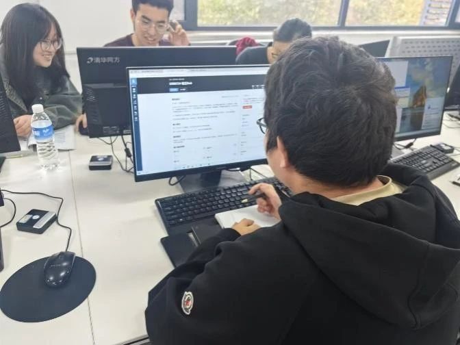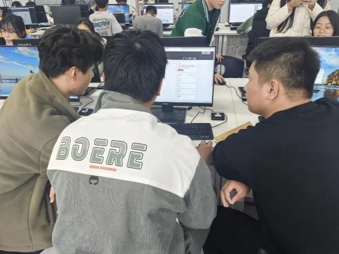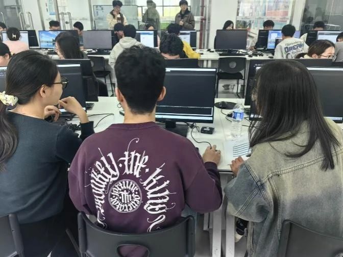 比赛现场每位选手都全神贯注地盯着屏幕,手指在键盘上飞快地舞动,他们的眼神时而凝重,时而闪烁着兴奋的光芒。有的选手眉头紧锁,似乎在思考着某个棘手的算法问题;有的则嘴角微扬,似乎刚刚攻克了一个难关。比赛现场的一角,几位工作人员忙碌地穿梭,为选手们提供必要的帮助和支持。