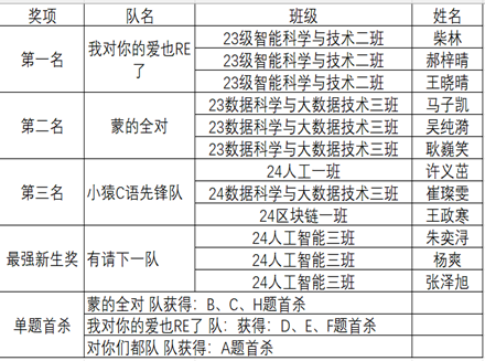比赛最终在一片紧张而又热烈的氛围中圆满结束,选手们相继停下了敲击键盘的手指,有的长舒一口气,绽放出释然且满足的微笑;有的则急不可待地与邻座的伙伴交流起解题的方法与心得。经过工作人员的现场评比,“我对你的爱也RE了”、“蒙的全对”、“小猿C语先锋队”三队凭借自己扎实的编程功底脱颖而出。