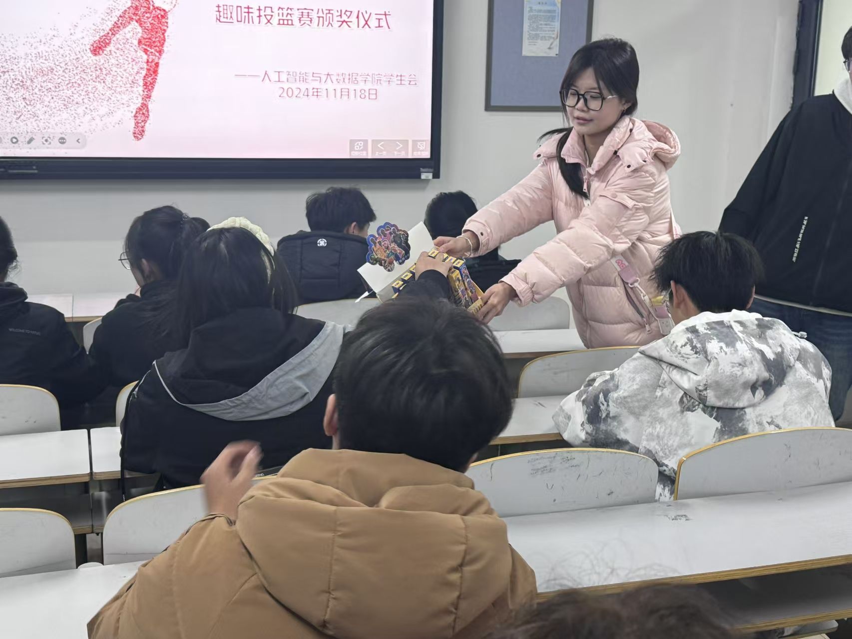 比赛结束后,工作人员统计了各个参与人员的得分,并举办了颁奖仪式。前五名选手获得了篮球鼠标垫作为奖品,第六名至第二十名的选手则获得了篮球中性笔盲盒一支,这些奖励极大地激励了学生们的参与热情。此外,活动还特别设置了学分奖励,进一步激发了学生们的积极性。