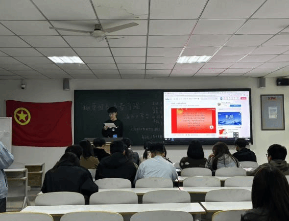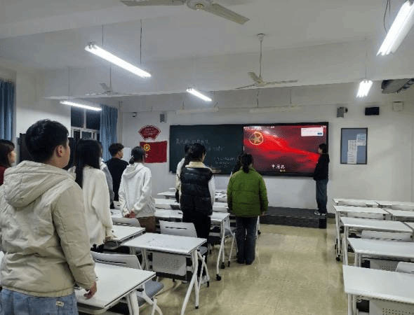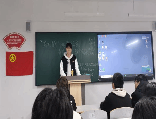 活动伊始,全体成员肃立,齐声高唱振奋人心的团歌,那激昂的旋律在教室内回响,每个人的脸上都洋溢着坚定和自豪的表情,彰显了对共青团的热爱与敬仰。