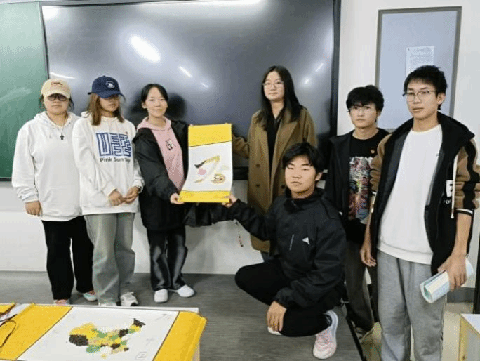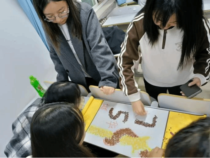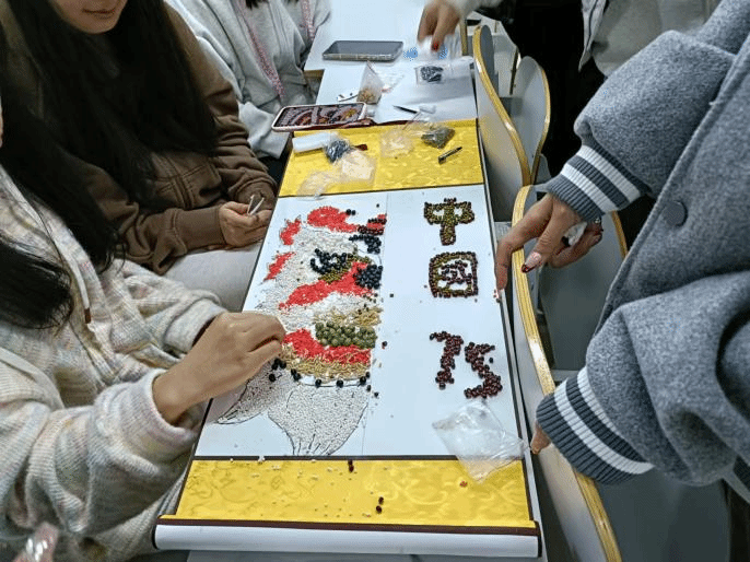 活动以庆祝祖国75周年华诞为契机,通过谷物作画的独特形式,激发学生的爱国热情与创造力。学生们自由组队,分成四个小组,以团队合作的方式投入到创作中。