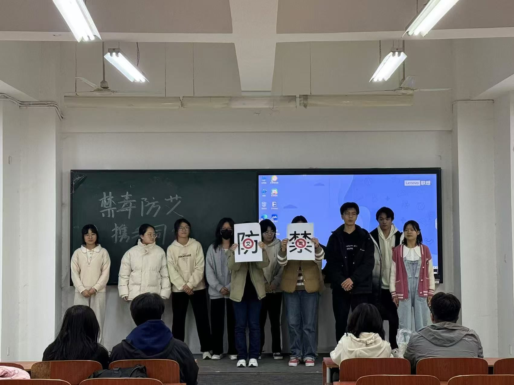 在比赛现场,各参赛队伍经过精心准备,以饱满的热情展现出精湛的演技。他们通过生动且极具感染力的演绎,深刻地揭示了毒品和艾滋病给个人带来的身心折磨,对家庭造成的破碎与痛苦,以及给社会带来的沉重负担和灾难性后果。与此同时,他们还坚定地传递出拒绝毒品、预防艾滋病的强烈信念。经过激烈角逐,24级区块链2班代表队啊对对队获得了本次大赛的第一名,期待他们在校赛中取得好成绩。