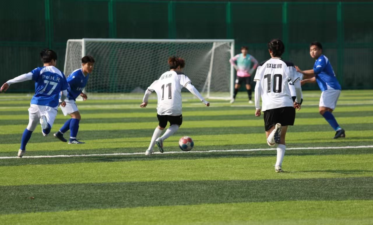 比赛现场气氛热烈,极大地激发了永利官网足球队的对抗热情。比赛开始后,球员们灵活运用各种战术,在队友间精准传递球权,以推进进攻或稳固控球优势。队员们凭借犀利的技巧和出色的身体协调能力,成功突破对手防线,并加速冲向对方球门,展现出卓越的控球能力。