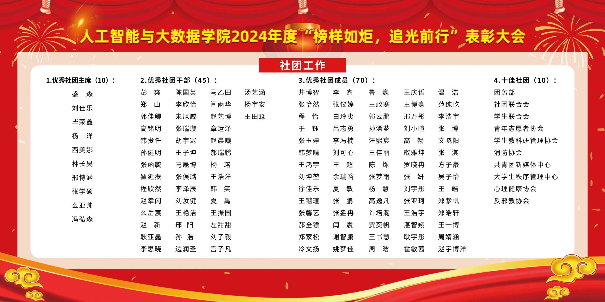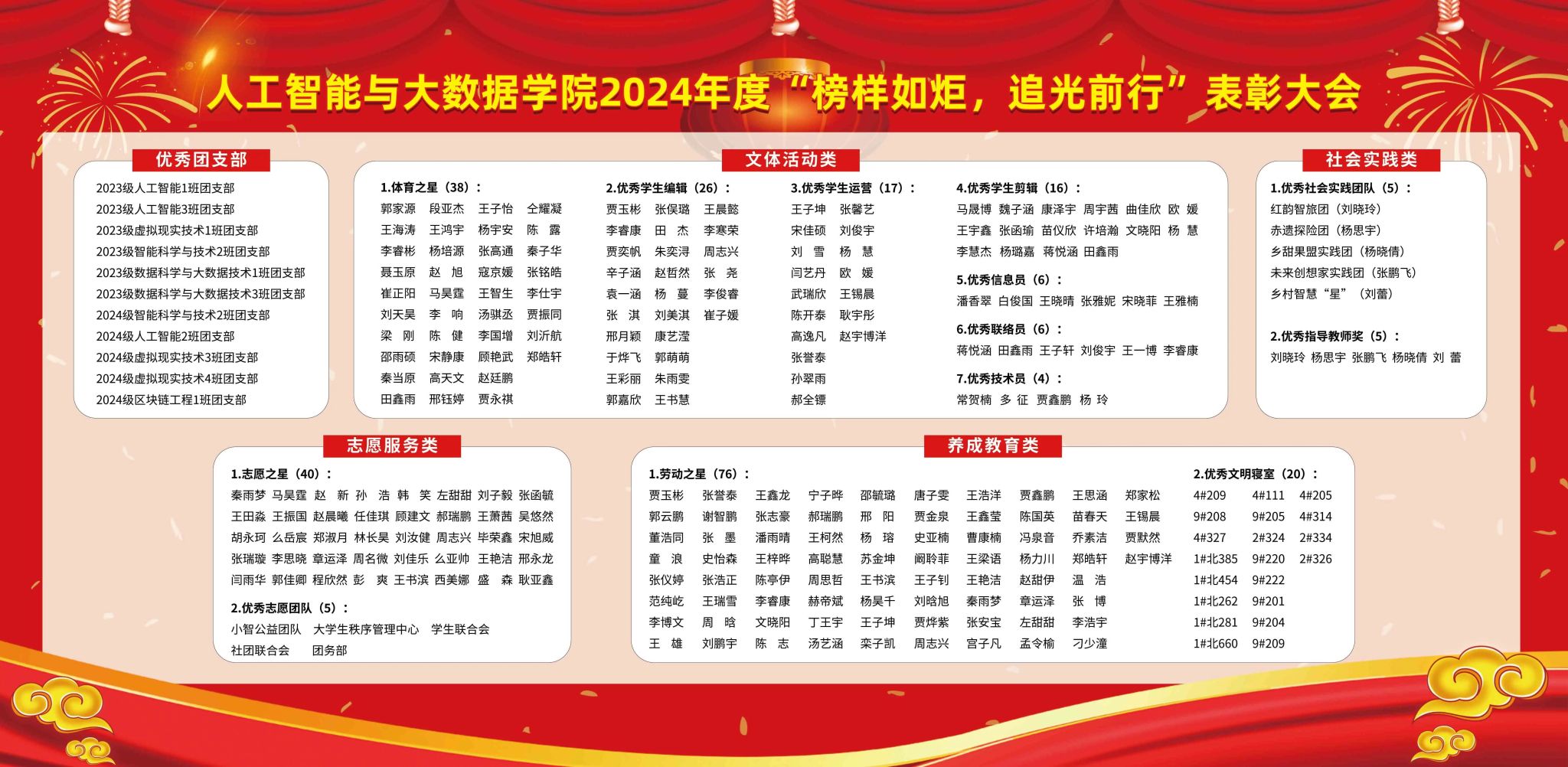 为全面总结永利官网2024年度学生工作,表彰先进、树立典型,营造积极向上、开拓进取的校园文化氛围,现将2024年度“榜样如炬,追光前行”优秀学生及社团予以表彰。名单如下: