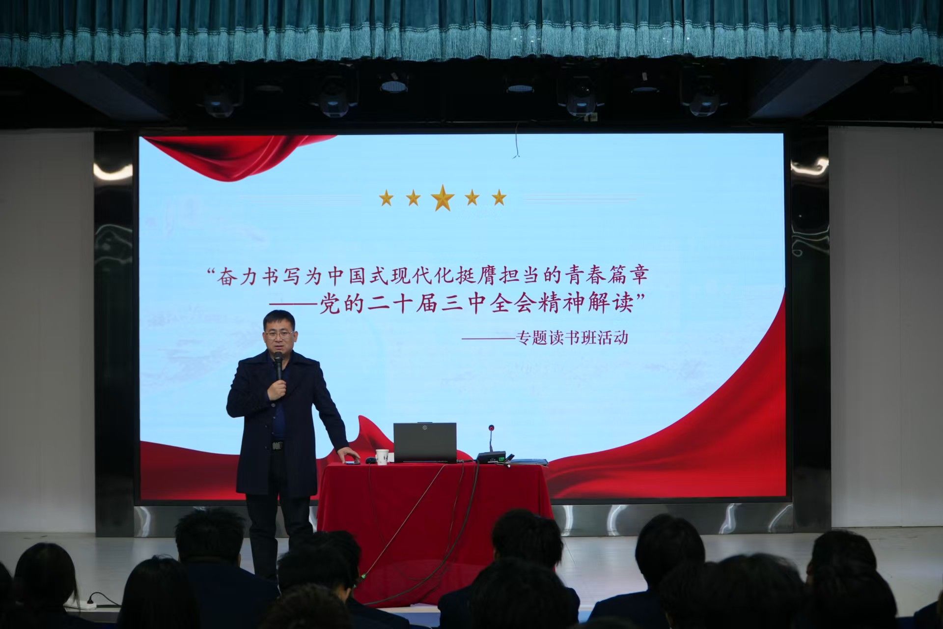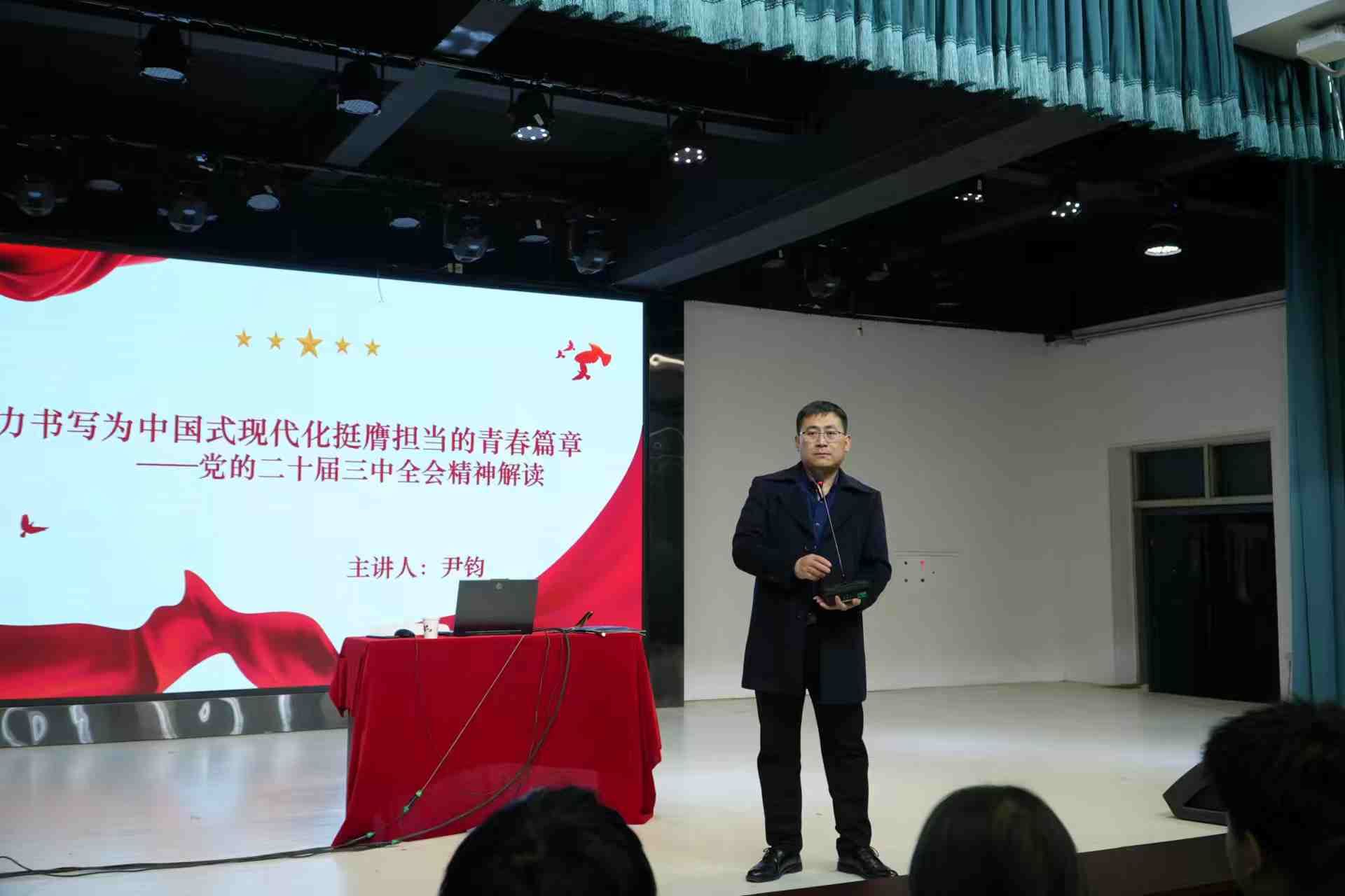 2024年12月20日,aa3044永利集团团总支、学生会深入“学习贯彻党的二十届三中全会精神”专题读书班于启行楼101大学生活动中心举办专题辅导报告第一讲。讲座由aa3044永利集团党总支书记、学管副院长尹钧主讲,“青马工程”学员、学生骨干参加学习。