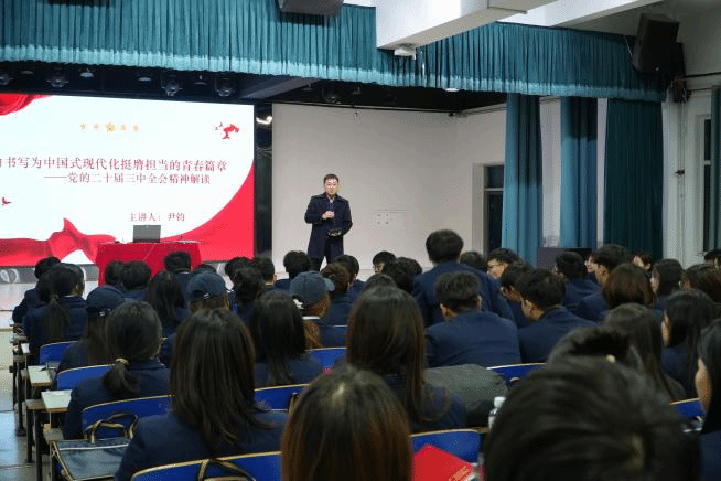 讲座伊始,永利官网党总支书记、学管副院长尹钧致开场词,对来参与学习的学生给予厚重的期望,并简要介绍了会议的背景和目的。随后以深入浅出的方式,对党的二十届三中全会精神进行了全面解读,强调了全会精神对于青年学生的重要性和指导意义。在专题讲座环节,尹院长结合实际,讲解了如何将个人发展与国家需求紧密结合,以及如何为时代发展贡献一份力量。讲座内容丰富,既有理论深度,又有实践指导意义,受到了在场学生的热烈响应。学生积极提问,院长耐心解答,现场气氛活跃,进一步增强了学习的互动性和实效性。