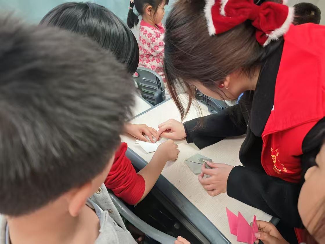 除此之外,活动还设计了丰富多彩的趣味游戏,如“雷锋知识竞答”、“团队协作接力赛”等。在“折纸递温情”环节,团员们带领小学生们一起制作手工折纸。孩子们在志愿者的指导下,折出了象征希望的纸鹤、传递友爱的花朵等手工作品。这些手工作品承载着孩子们对雷锋精神的理解和对美好未来的向往。