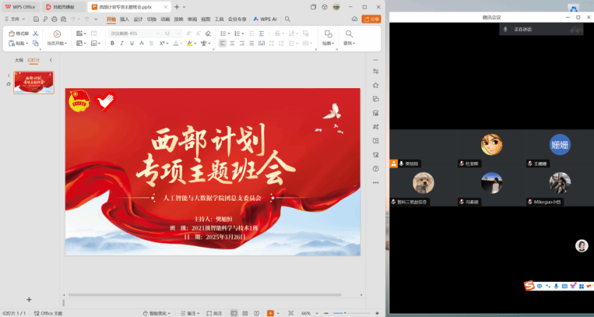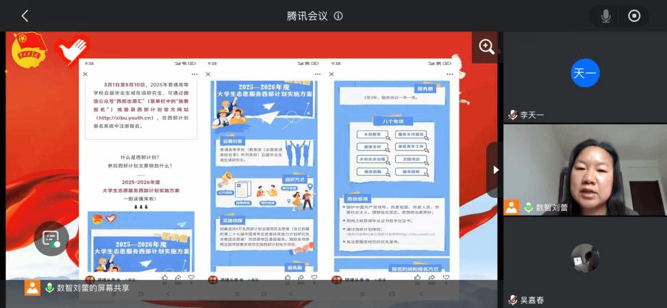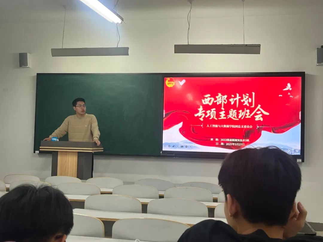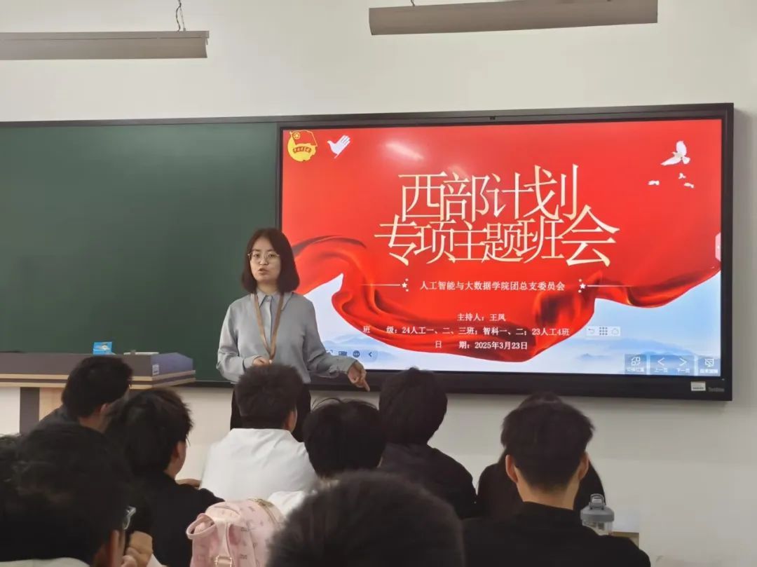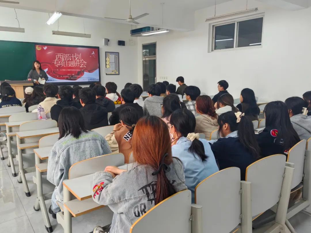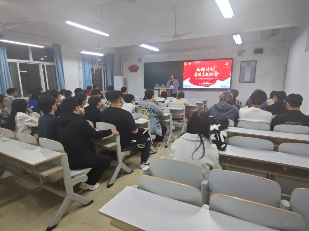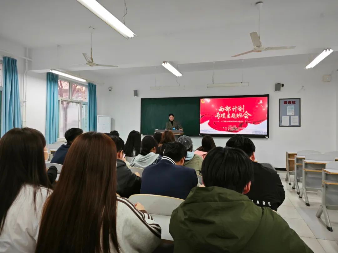 aa3044永利集团于2025年3月23日在线上及次教各班教室开展西部计划专项主题班会。本次班会由各班辅导员主持,大一至大四全体学生参加。由于永利官网大四学生均在外实习,故毕业班辅导员选择采用线上班会,在校生均是线下班会。