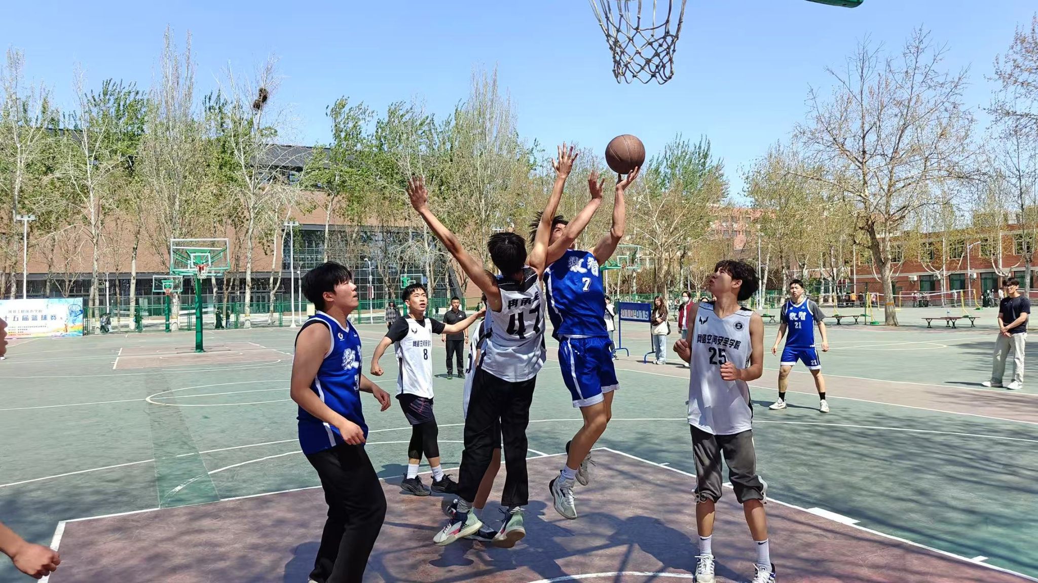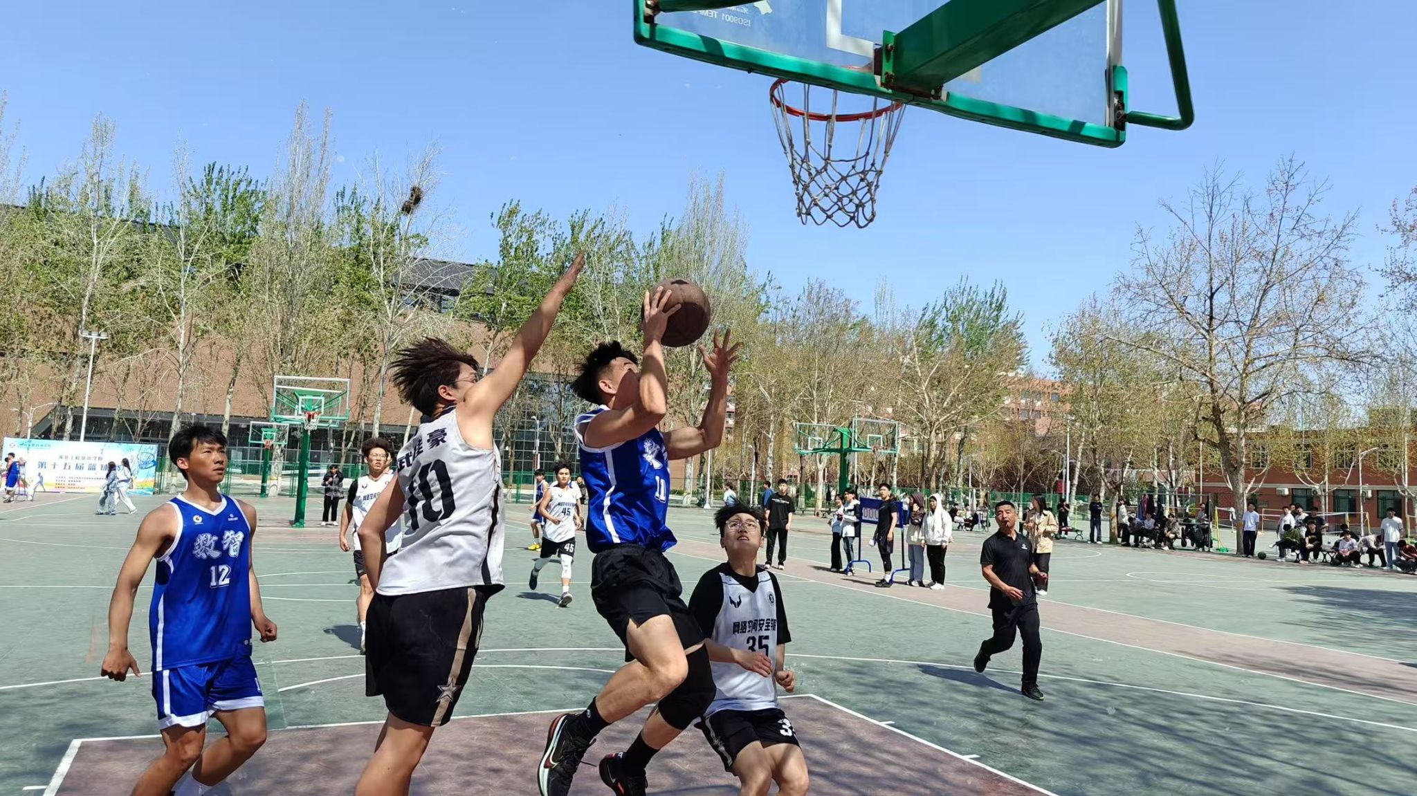 aa3044永利集团男子篮球队于2025年4月1日12:00在篮球场参加第十五届篮球竞赛男子组半决赛,并取得了比赛的胜利。