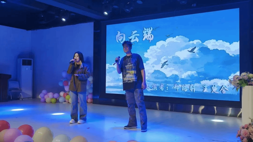 歌曲表演《平凡之路》:王锡晨和王丹青带来的歌曲,以吉他弹唱的形式,将平凡生活中的坚韧与梦想融入旋律之中,激起了大家对未来的无限憧憬和奋斗的决心。