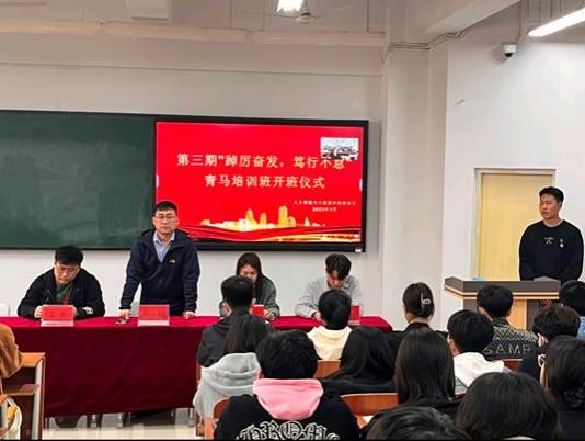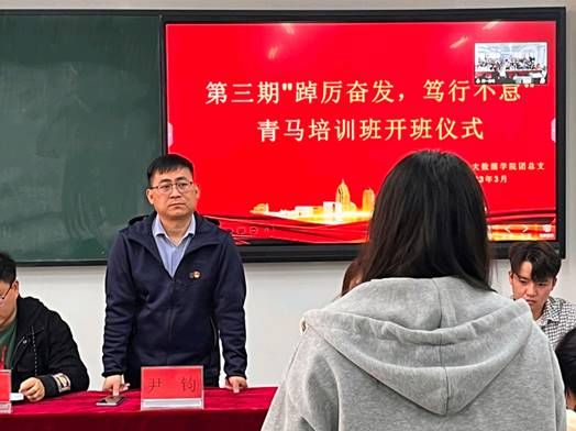 本次青马培训开班仪式由青马培训负责人刘宇轩主持,开班仪式在嘹亮的团歌声中拉开帷幕。首先,由尹钧院长宣布第三期“踔厉奋发,笃行不怠”青马培训班正式开班。接着由青马培训班学员代表于仰昊代表全体学员郑重承诺:“严格遵守青马培训班的规章制度,积极配合各项工作,认真学习,在学习中实践升华自己的人格,为成为一名真正的大学生骨干、成为合格的预备党员而努力奋斗,并为学校的建设和发展做出贡献!”